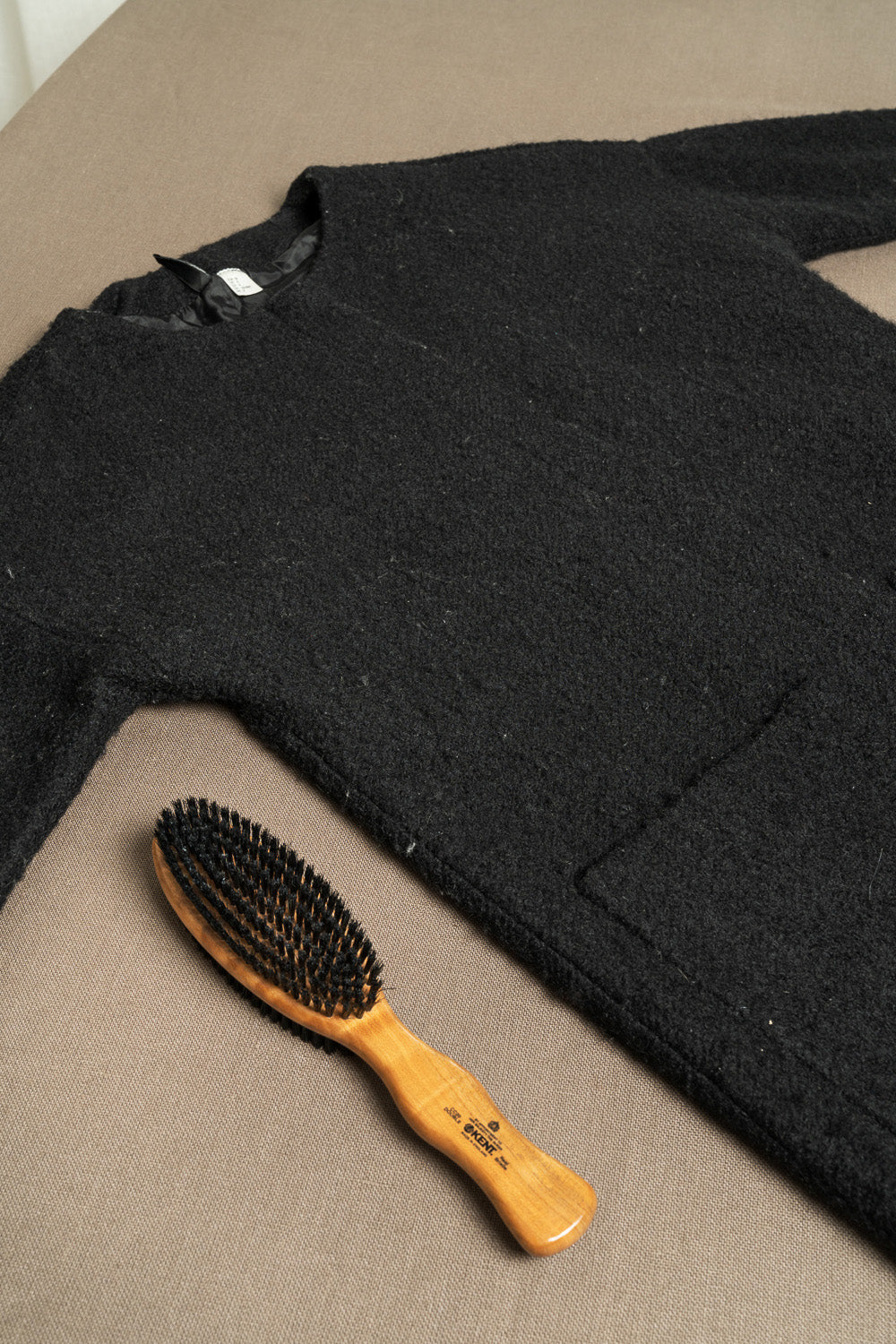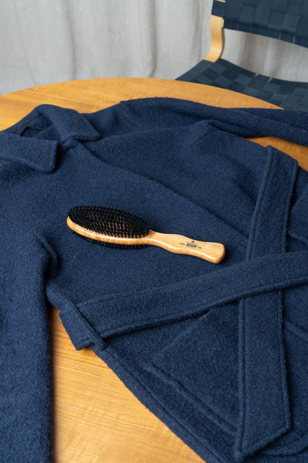 Villakangastakkien puhtaanapidossa ja huollossa kirkkaasti tärkein väline on luonnonharjaksinen vaateharja. Vaateharjaa käyttämällä voit vähentää tuntuvasti villakangastakin pesun tarvetta ja pidät myös nukkaantumisen kurissa.