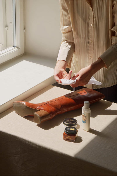 Nahkaa voisi verrata ihoon, sillä erilaisia nahkoja on paljon: ohuita ja paksumpia sekä eri tavoin viimeisteltyjä. Oikeanlaiseen huoltoon vaikuttavat kaikki nämä asiat, ja kuten ihonhoidossakin – myös se, miten sitä on hoidettu aikaisemmin tai kuinka kuivaksi se on ehkä päätynyt käytössä. Aihe on siis laaja, muttei ollenkaan mahdoton sisäistää. Kirjassamme nahan hoito-ohjeet on jaettu tekstiilien tavoin tyypeittäin sekä vielä erikseen kengille omansa sekä laukuille, asusteille ja nahkavaatteille omansa, joten tutustumisen voi aloittaa esimerkiksi perehtymällä ensin mokkanahkakenkien hoito-ohjeeseen, jos sellaiset löytyy kaapista, ja jatkaa vaikka lampaannahkaisten laukkujen ohjeeseen, jos kaipaa vaikka lisätietoa ennen uuden hankinnan tekoa. Hoito-ohjeiden lisäksi kirjasta löytyy erilaisista nahkatyypeistä kertova luku, jonka avulla voi oppia tunnistamaan erilaiset nahat toisistaan ja minkälaiseen käyttöön ne soveltuvat parhaiten. Nahan hoidossa oikeanlaisilla välineillä ja pienillä teoilla, kuten päivittäisellä siistimisellä tai säilytyksellä, on suuri vaikutus tuotteen ulkonäköön ja kestävyyteen. Nahka-osasta löytyy suosituksemme hoitovälineistä ja -aineista ja parhaat vinkkimme myös kuluneimpien kenkien, laukkujen tai asusteiden uudistamiseen.