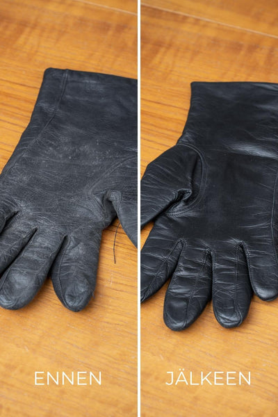 Nahkahanskoille suosittelemme valitsemaan kevyemmän nahanhoitogeelin.