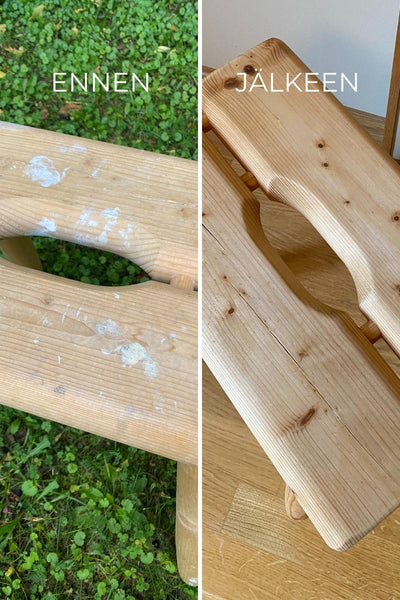 Käsittelemättömän luonnonpuupinnan huolto onnistuu varmasti myös noviisilta. Tahrat ja tummentumat häviävät nopealla hionnalla ja öljyämällä luot pintaan lämpimän sävyn ja suojaavan pinnan.