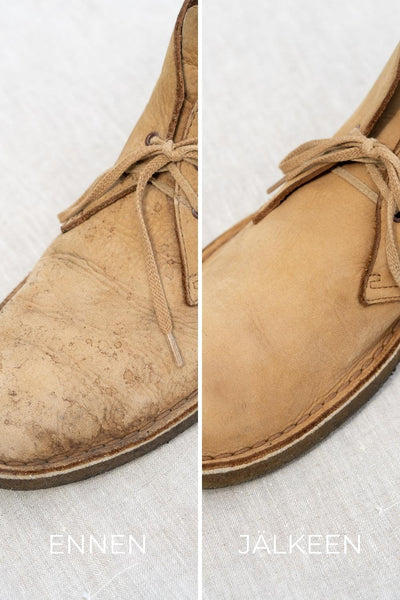 Pölyiset ja kuraiset mokkakengät ovat vain puhdistuksen päässä uusista kengistä!