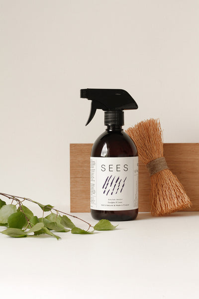 SEESin eukalyptuksen tuoksuinen pesuaine tekee saunan puhdistuksesta aromaterapeuttisen mieltä virkistävän hetken. Suihkutettava pesuaine helpottaa puhdistusta huomattavasti, kun vierelle ei tarvita erillistä pesuastiaa: suihkuta vain kosteille lauteille, harjaa ja huuhtele.
