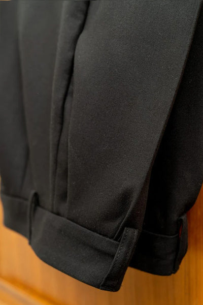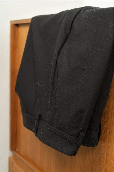 Harjaa housut vielä kertaalleen osio kerrallaan läpi niin, että sumutat niiden pintaan vettä ennen harjausta. Vesisuihke puhdistaa kevyesti materiaalin pinnan ja auttaa poistamaan viimeisetkin pölyhiukkaset, karvat ja irtolian. Höyrytä tai silitä housut ja vie ne tuulettumaan.