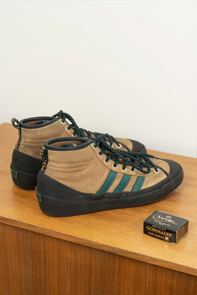 Harjaa kengät ensin perusteellisesti kenkäharjalla. Kumita tahrat ja tummentuneet alueet perusteellisesti mokkakumilla. Kovettumia voi kokeilla rapsuttaa terävällä veitsellä. Perusteellinen tahrojen esikäsittely ennen puhdistusta tuo aina parhaan lopputuloksen. Ohjeemme kengät kumitimme kauttaaltaan mokkakumilla, sillä kengät olivat kauttaaltaan hyvin tummuneet.