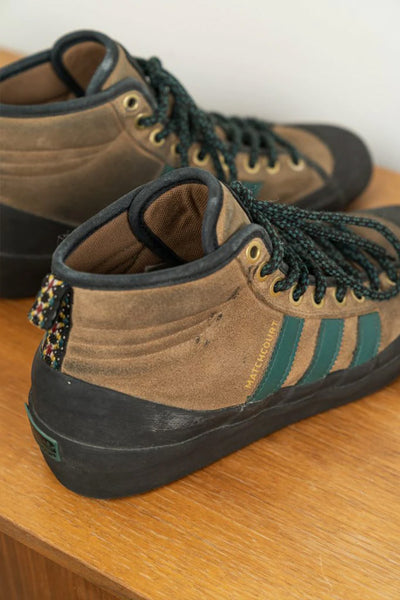 Huoltamamme tennarit on hankittu uutena ja ne ovat olleet kaksi talvea aktiivisessa arkikäytössä kävellessä ja pyöräillessä. Kenkiä on välillä harjattu kenkäharjalla, mutta niitä ei ole suojattu koskaan tai huollettu muutoin. Kengät ovat tummuneet kauttaaltaan – erityisesti sisäsyrjistä pyörän kampien hankauksesta.