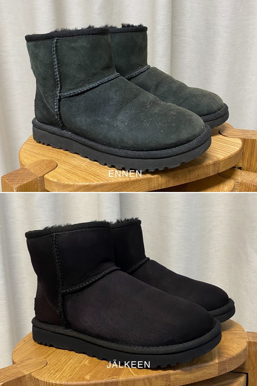 Huom. Suosittelemme käyttämään väriä vain kengille ja muille hankaamattomille pinnoille. Emme suosittele värin käyttöä esimerkiksi laukuille, sillä väri voi hankautua vaatteisiin.